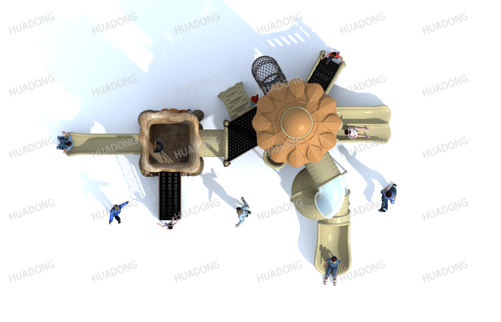 • 远古部落系列虽然名字带着“古”字,但是在设计细节处无不透露着艺术与创造性。当孩子在仿真树中探索、冒险、嬉戏游玩时,就像穿越到古老的神秘森林;粗略的树干包围着他们,头顶是高耸的茅草屋,触感真实的枯枝走廊,还有随处可见的小动物们…… 远古部落系列旨在打造区别于其他系列带给孩子们的新鲜感,让孩子们找设计者打造的神秘世界中获得冒险的乐趣。