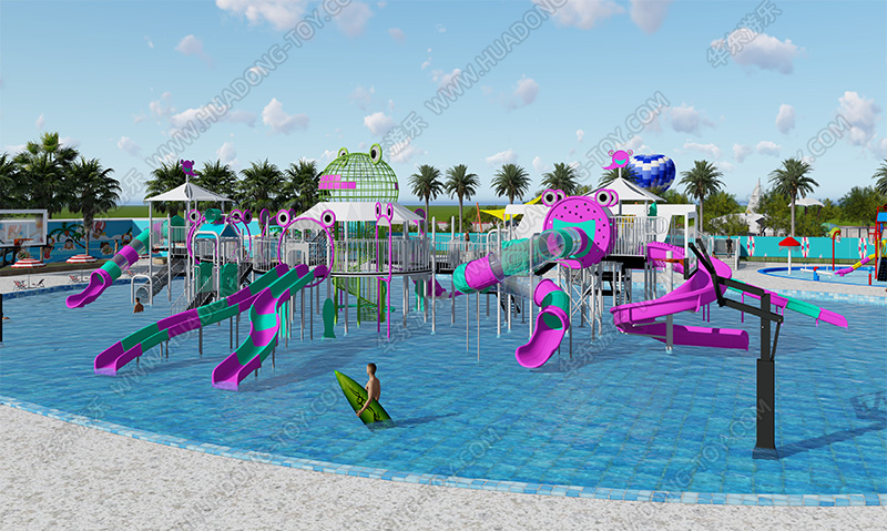本案例设计灵感来源于童谣 小蝌蚪,圆溜溜,小尾巴,拖后头,东游游,西逛逛,好像许多黑豆豆。以青蛙的发育史为主要创作元素,引用小蝌蚪可爱的形象,结合青蛙的各种造型,打造小朋友们像小蝌蚪一样在水中自由自在的游玩与尽情的追逐的综合性水上乐园。整个水上乐园充满活泼奇特,让孩子们在玩的过程中激发了想象力,提高保护小动物的意识,起到寓教于乐的效果!