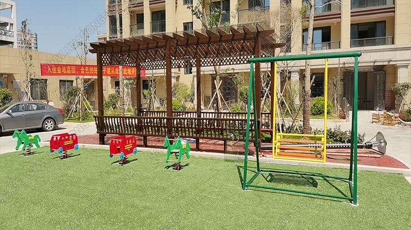 • 碧桂园金地嘉园项目是国内大型房地产项目,整个项目采用以环保的绿色为主,主体游乐设备采用绿色的森林系列大型滑梯组合,新增了摇摇乐,健身器材,万能秋千组合等游乐设备,不仅仅丰富了小区的休闲娱乐,也为小朋友玩耍提供了场所。