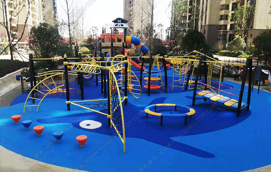 碧桂园是国内大型的房地产集团,碧桂园此次选用的是乐鱼运动游乐自主研发的海盗船系列滑梯组合和集攀爬、钻洞、健身为一体的万能健身器材,大大的丰富了小区的生活和乐趣。