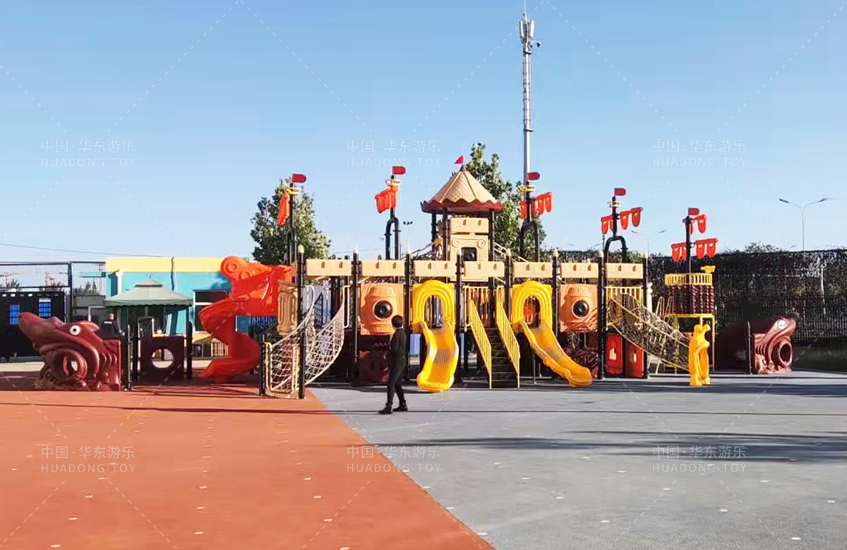 北京市朝阳区朝花幼儿园选用的是乐鱼运动游乐自主研发的海盗船系列组合滑梯,该套设备设置了大型S型滑梯、攀爬网、钻洞、网桥、攀岩等功能,为老师的教学提供了方便,同时也为校园提供了生机与活力。