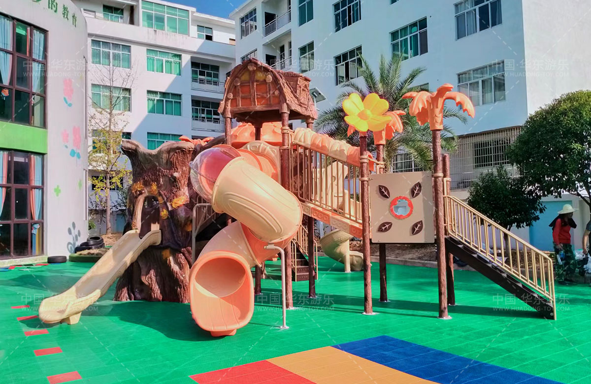 江西省上饶市临湖中心幼儿园是一个专业的学前幼儿教育学校,此次选用的是乐鱼运动游乐自主研发和设计的具有滑梯、钻洞、攀爬等功能为一体的远古部落系列的组合滑梯,该滑梯具有功能齐全、颜色艳丽、主题性强、使用寿命长等特点,深受小朋友们的喜爱。