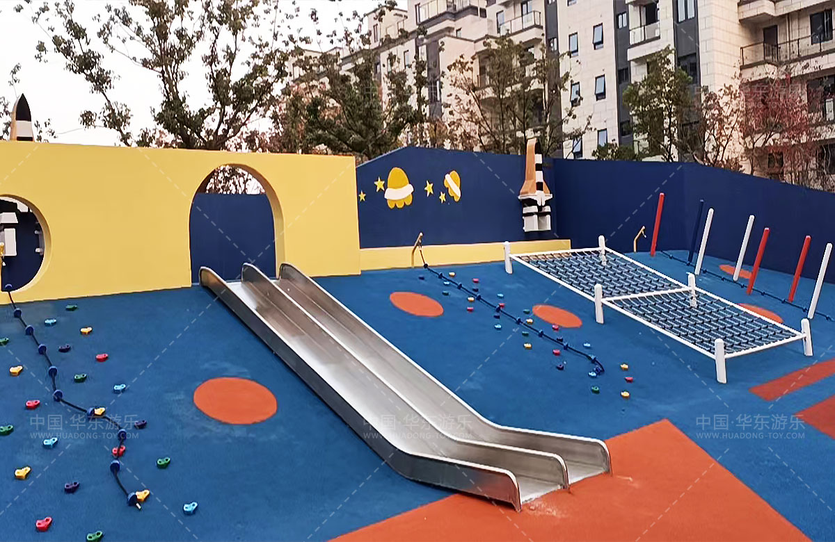 • 江苏南通海安碧桂园项目是一个高档的地产类游乐项目,该项目采用能量电池为设计主题,设计了小朋友喜爱的摇摇乐、沙池、微地形、攀爬网、攀爬绳、滑梯等游乐设备,为生活在该小区的孩子们提供了一个休闲娱乐的场所。