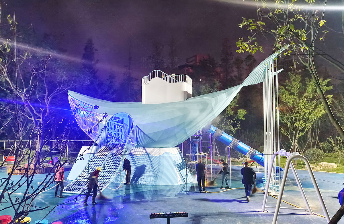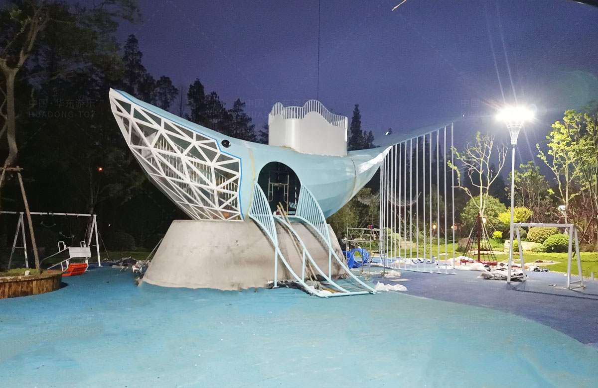 • 该项目选用的是乐鱼运动游乐自主研发和生产的鲸鱼主题系列的非标定制游乐设备,设计了具有攀爬网、钻洞、空中滑索、打击乐器、旋转椅等功能设备,卡通的造型,完善的功能深受小朋友们的喜爱。