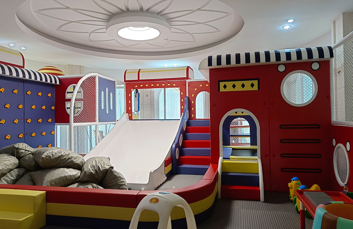为了更好的让孩子们有一个玩耍的场所,该项目选用了海洋球、攀爬墙、旱雪滑梯、儿童秋千、儿童蹦床、游戏迷宫等功能为一体的室内淘气堡儿童乐园,为小朋友的健康发展提供了保障。
