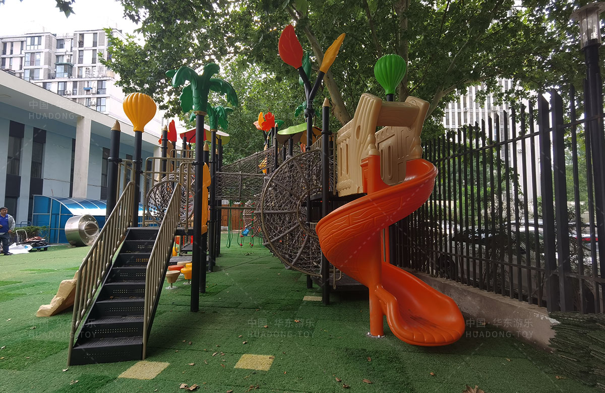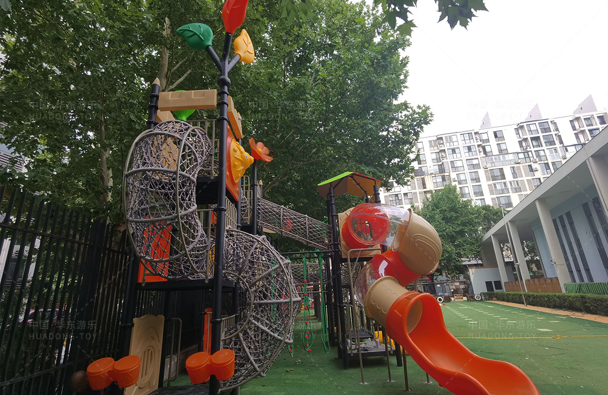 • 北京市朝阳区管庄忠德幼儿园选用的是乐鱼运动游乐自主研发和设计的大自然系列组合滑梯,该滑梯是一款具备了攀爬网、钻洞、滑梯、丛林拓展、拍拍鼓、攀爬墙、固定踏踏车、平衡桩等功能为一体的综合性 游乐设备,能够很好的锻炼小朋友的全面发展。