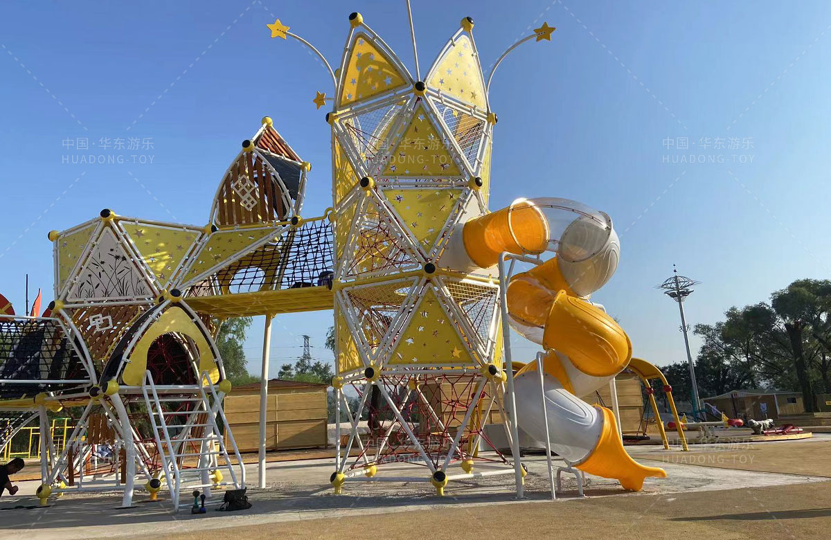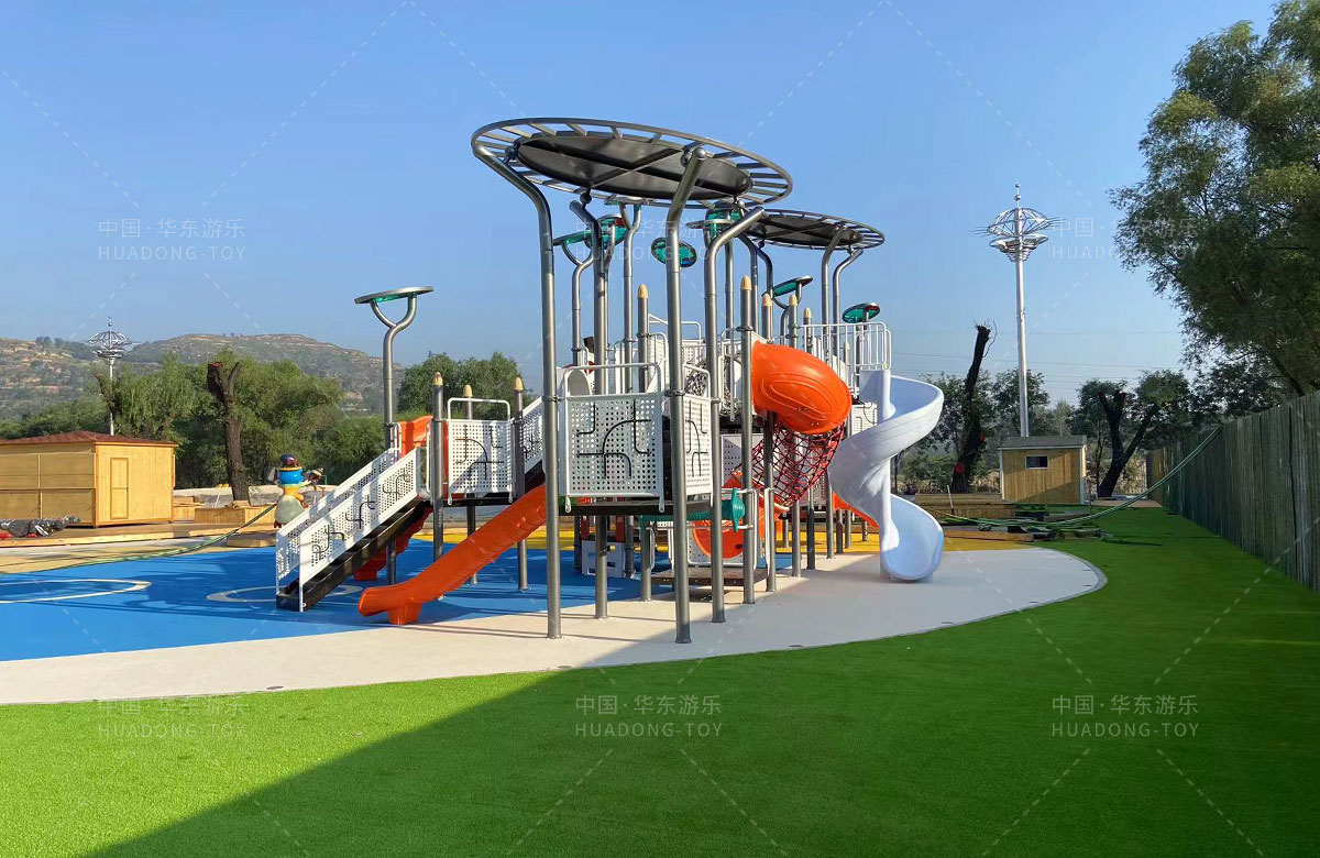 崔家沟体育广场体育广场选用的是乐鱼运动游乐自主研发和设计的非标定制系列游乐设备,分别设置了攀爬网、钻洞、不锈钢滑梯、儿童摇摇乐、儿童秋千、木质拓展等游乐设备,很大程度上丰富了孩子们的娱乐生活,也为整个场地提供了生机与活力。