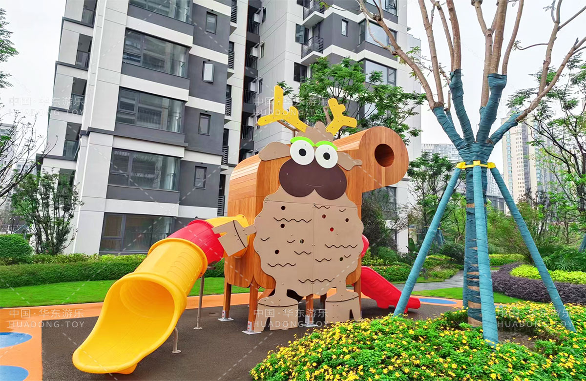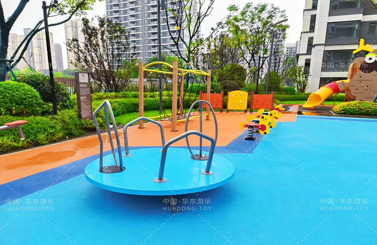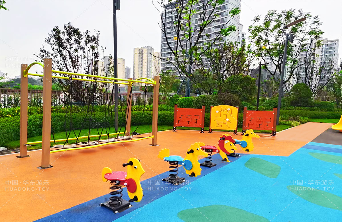 • 四川省成都市新城林屿溪选用的是乐鱼运动游乐自主研发和设计的非标定制系列的游乐设备,为了更多让小朋友们有一个玩耍的场地,整个游乐场分别设计了儿童摇摇乐、儿童秋千、成人健身器、趣味迷宫、平衡吊桥、旋转椅、象鼻组合滑梯等游乐设备。