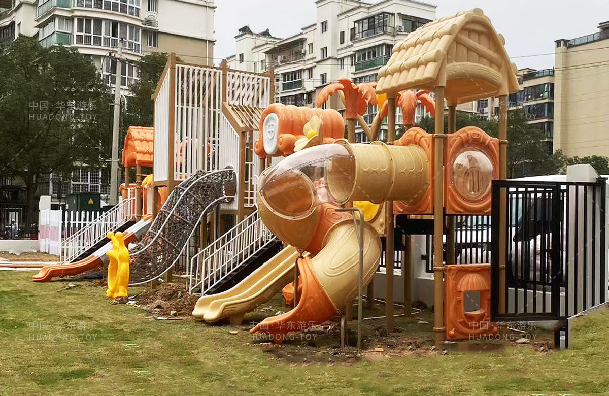 • 永嘉县童真幼儿园是一家专业的学前培训学校,此次选用的儿童游乐设备是乐鱼运动游乐自主研发和设计的大型户外组合滑梯,该滑梯是一款具备了攀爬网、大型滑筒、旋转滑梯、直行走梯、双人滑梯等功能为一体的综合性游乐设备。