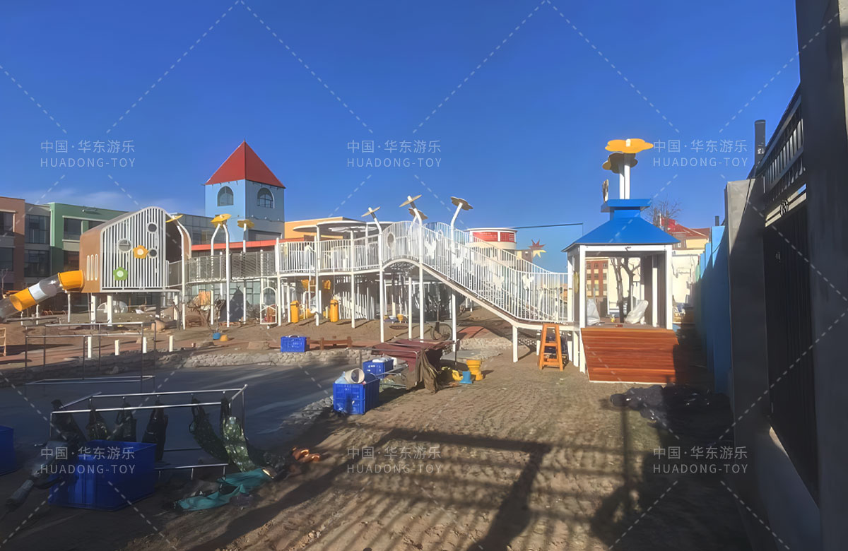• 鄂尔多斯市鄂托克旗蒙古族幼儿园是一家专业的学期教育培训机构,此次选用的是乐鱼运动游乐自主研发和设计的非标定制系列的游乐设备,分别设计了空中廊架、月亮秋千、平衡踩桩、儿童沙袋、大型滑筒、儿童秋千、攀爬网、游戏小屋等功能,为孩子的玩耍提供了保障,也为老师的教学提供了一个很好的场所。