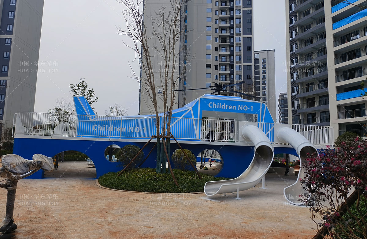 • 江西省上饶市碧桂园是一家高端的生活服务小区,此次选用的是乐鱼运动游乐自主研发和设计的直飞机主题的非标定制游乐设备,分别设置了大型滑筒、攀爬网、攀爬梯、钻洞、攀爬墙、大型观光廊架等功能,卡通的造型、齐全的功能、深受孩子们的喜爱,除此之外还添置了各种类型的健身器、儿童秋千、儿童摇摇乐、旋转椅等游乐设备,不仅丰富了小区的生活,也为老人提供了一个很好的健身场所。