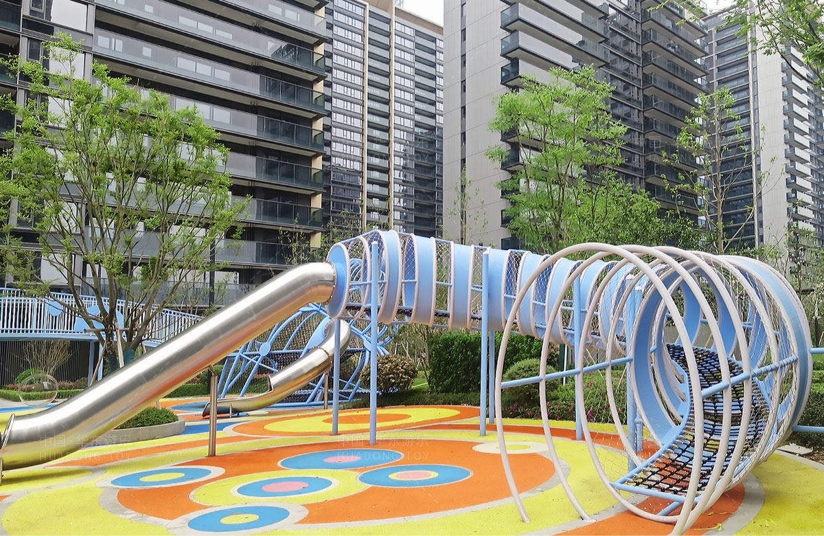 • 温州德信是一家高端居民小区,为了更好的提供高端的服务,该小区选用的是乐鱼运动游乐自主研发和生产的以“田螺公主”为主题的综合性游乐园,设置了孩子们喜欢的钻洞、攀爬、秋千、摇摇乐、翻翻乐、不锈钢滑梯、攀爬网等功能的游乐设备,不仅丰富了小区的生活,也为孩子们的玩耍提供了一个很好的游乐场所。
