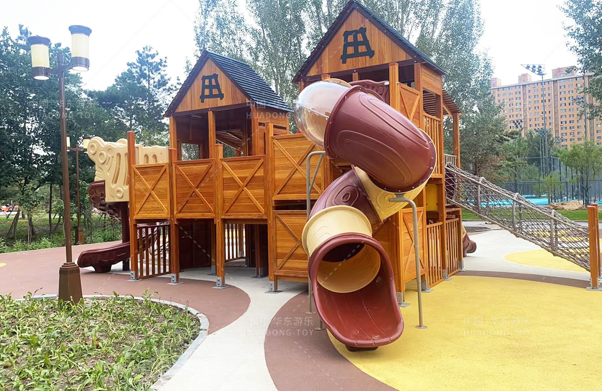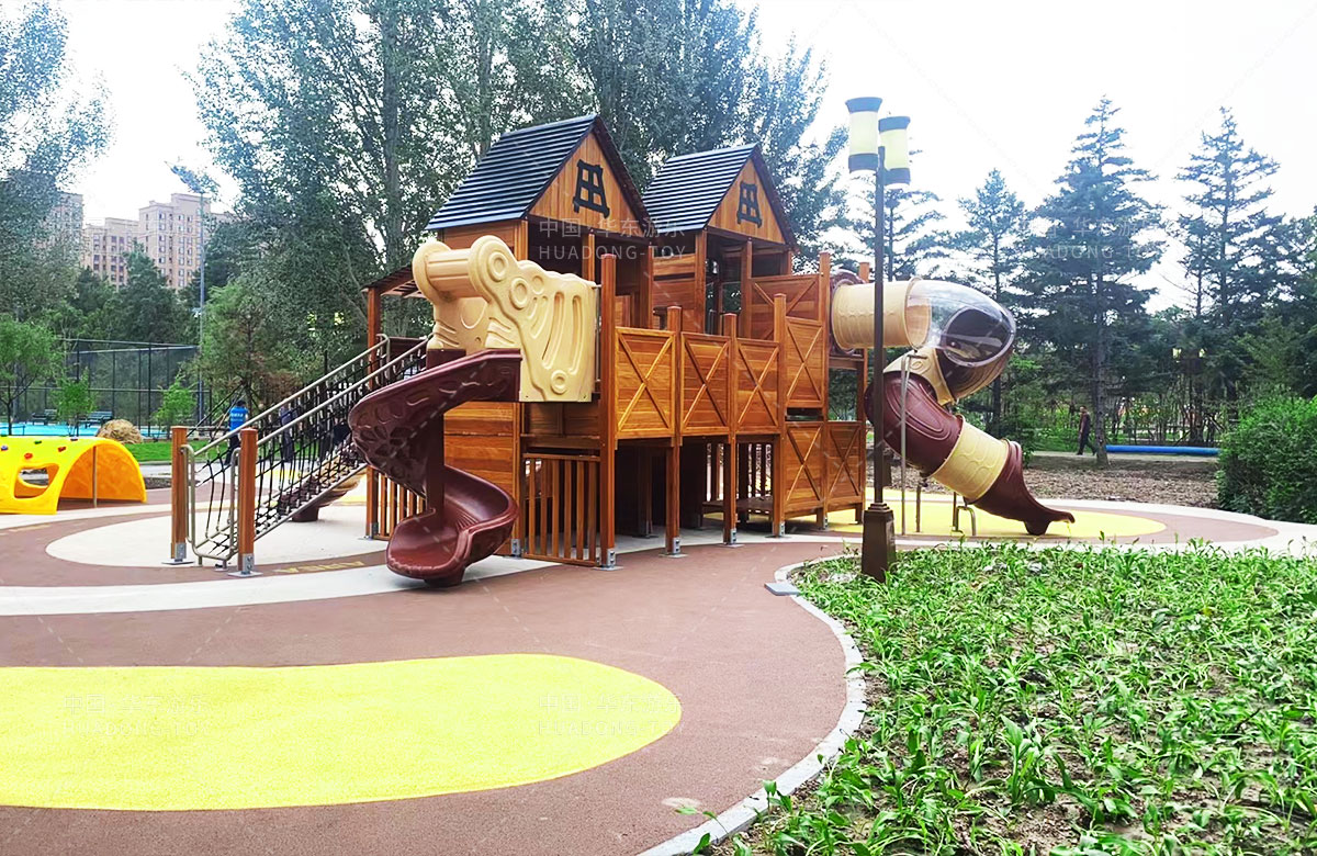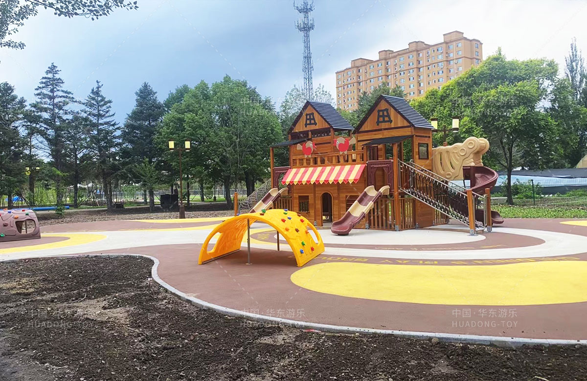 吉林省白城市洮北区兵器城小区是一个综合类型的居民小区,该小区设置了各种类型的 游乐设施,为了更好的为人民提供一个休闲娱乐的场所,此次选用的是乐鱼运动游乐自主研发和设计的木质小屋系列的组合滑梯,除此之外还设置了孩子们喜欢的各种攀爬游乐设备。