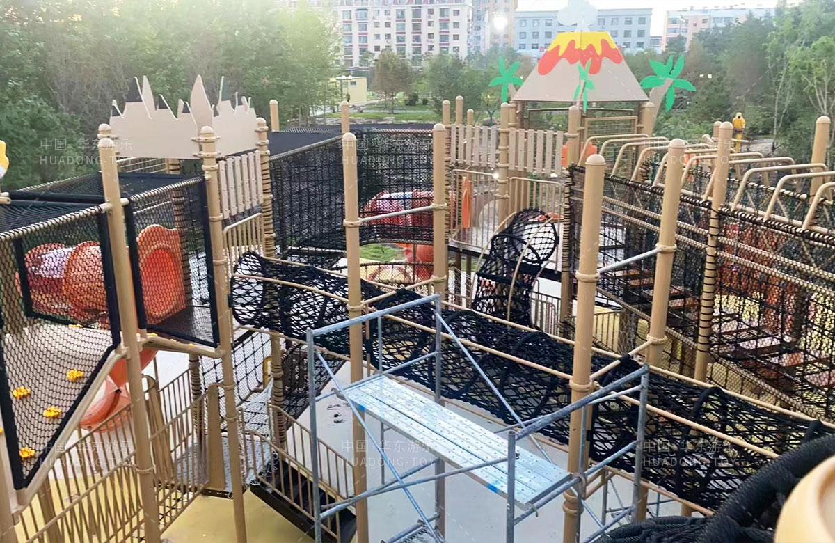 • 吉林省白城市洮北区兵器城北门公园是一个综合性市政公园,此次选用的是乐鱼运动游乐自主研发和设计的个性化定制系列的组合滑梯,该滑梯具有功能齐全、玩法多少、颜色艳丽、使用寿命长等特点,深受孩子们的喜爱。