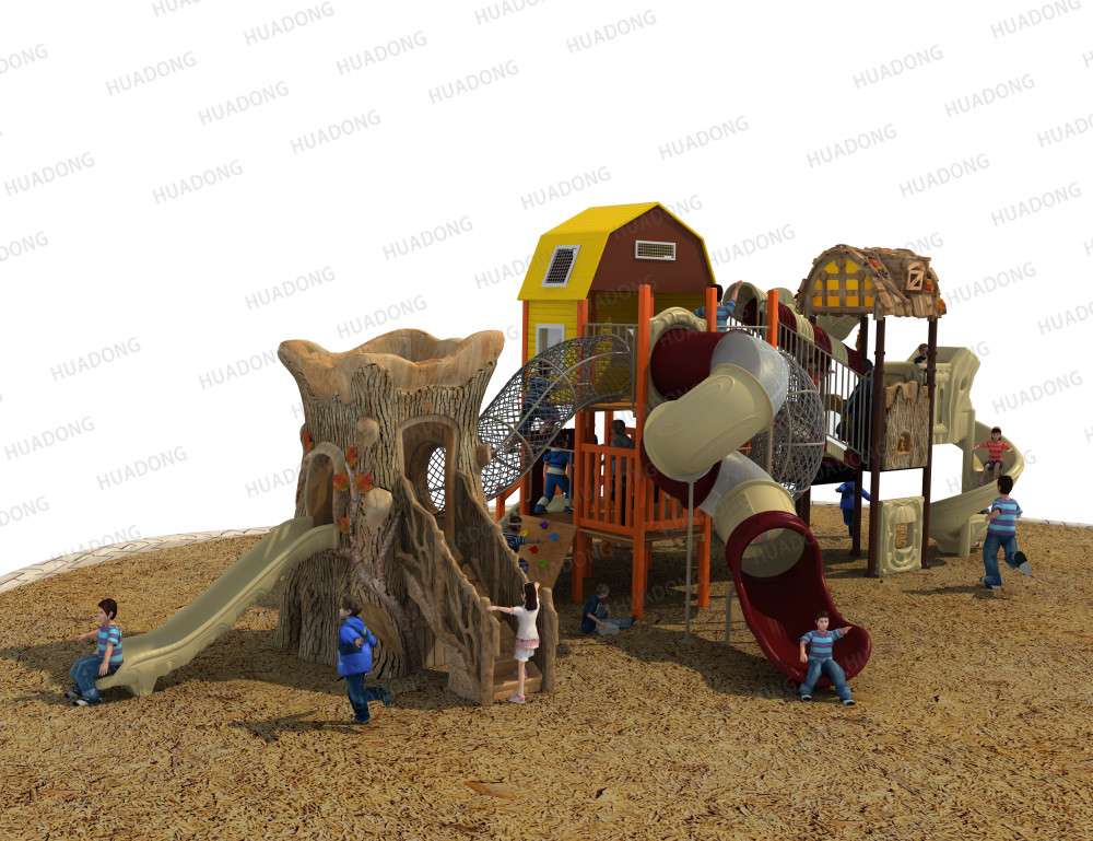 • 远古部落系列虽然名字带着“古”字,但是在设计细节处无不透露着艺术与创造性。当孩子在仿真树中探索、冒险、嬉戏游玩时,就像穿越到古老的神秘森林;粗略的树干包围着他们,头顶是高耸的茅草屋,触感真实的枯枝走廊,还有随处可见的小动物们…… 远古部落系列旨在打造区别于其他系列带给孩子们的新鲜感,让孩子们找设计者打造的神秘世界中获得冒险的乐趣。